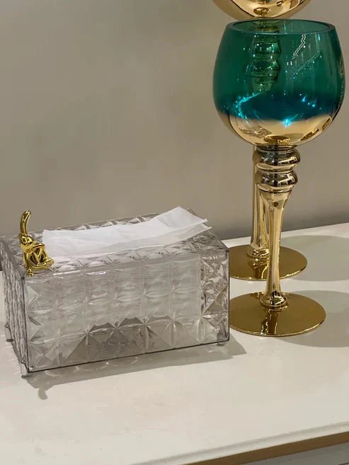 Elevate your interior style with this luxury crystal-style tissue box holder ✨ Designed with a transparent textured finish and a stunning golden deer accent, it adds a sophisticated and modern charm to any space 🦌